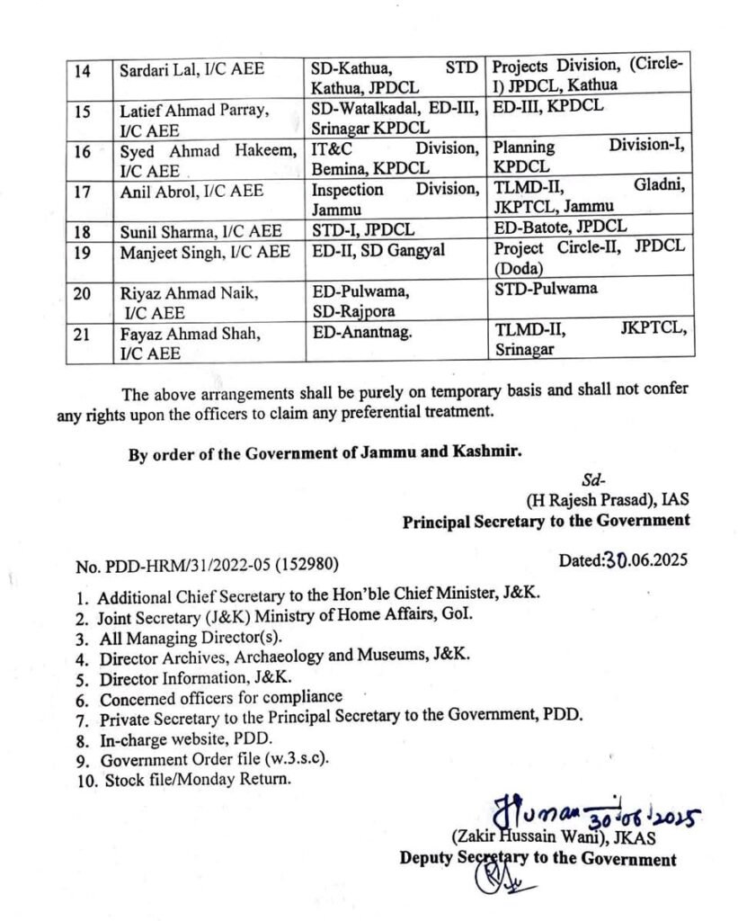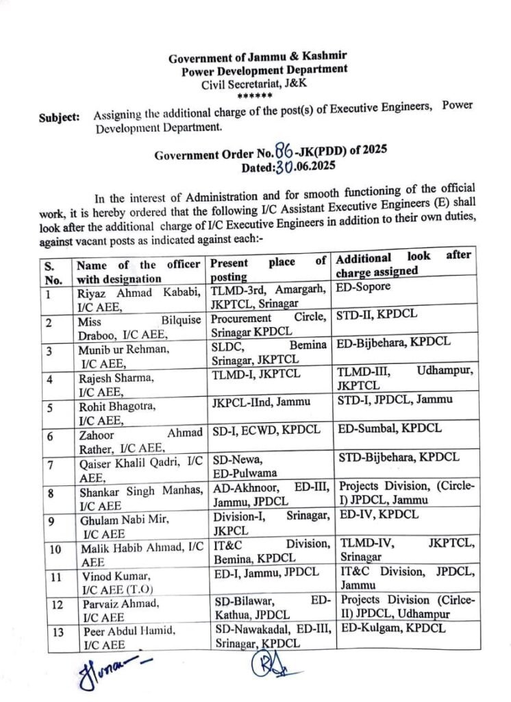 HomeJammu Jammu 21 AEEs given additional charge of Xens in JKPDD By The Morning Brief Newspaper June 30, 2025 FacebookTwitterPinterestWhatsApp Share FacebookTwitterPinterestWhatsApp Previous articleGross GST Collections Double In 5 Years To Record Rs 22.08 Lakh Cr In FY25Next articleCM Omar Abdullah Calls For Revival Of Buyer-Creator Relationship At SKICC Meet The Morning Brief Newspaperhttps://themorningbriefnewspaper.in/ Related Articles National Over 8,600 Complaints Filed Against Sitting Judges Since 2016, Lok Sabha Informed Jammu Speaker Abdul Rahim Rather Calls for Stronger Laws to Curb Food Adulteration in Jammu and Kashmir Kashmir Security Forces Conduct Surprise Checks in Lal Chowk Ahead of Pulwama Attack Anniversary LEAVE A REPLY Cancel reply Comment: Please enter your comment! Name:* Please enter your name here Email:* You have entered an incorrect email address! Please enter your email address here Website: Save my name, email, and website in this browser for the next time I comment. - Advertisement - Latest Articles National Over 8,600 Complaints Filed Against Sitting Judges Since 2016, Lok Sabha Informed Jammu Speaker Abdul Rahim Rather Calls for Stronger Laws to Curb Food Adulteration in Jammu and Kashmir Kashmir Security Forces Conduct Surprise Checks in Lal Chowk Ahead of Pulwama Attack Anniversary Jammu Ali Mohammad Sagar Condoles Demise of Senior NC Leader Qamar Ali Akhoon, Calls It Irreparable Loss to Kargil–Ladakh Jammu Mehbooba Mufti Seeks Government Clarification Over Alleged Demographic Change Plan in Kashmir Load more